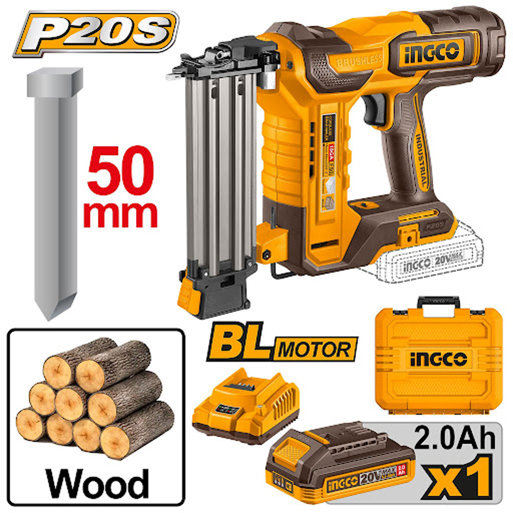 میخکوب شارژی ۲۰ ولت F50 سوپر اینکو مدل CBNLI5008 | قدرت بالا و عملکرد دقیق یک ابزار قدرتمند و چندکاره است که برای پروژههای مختلف ساختمانی و DIY (خودت انجام بده) طراحی شده است.